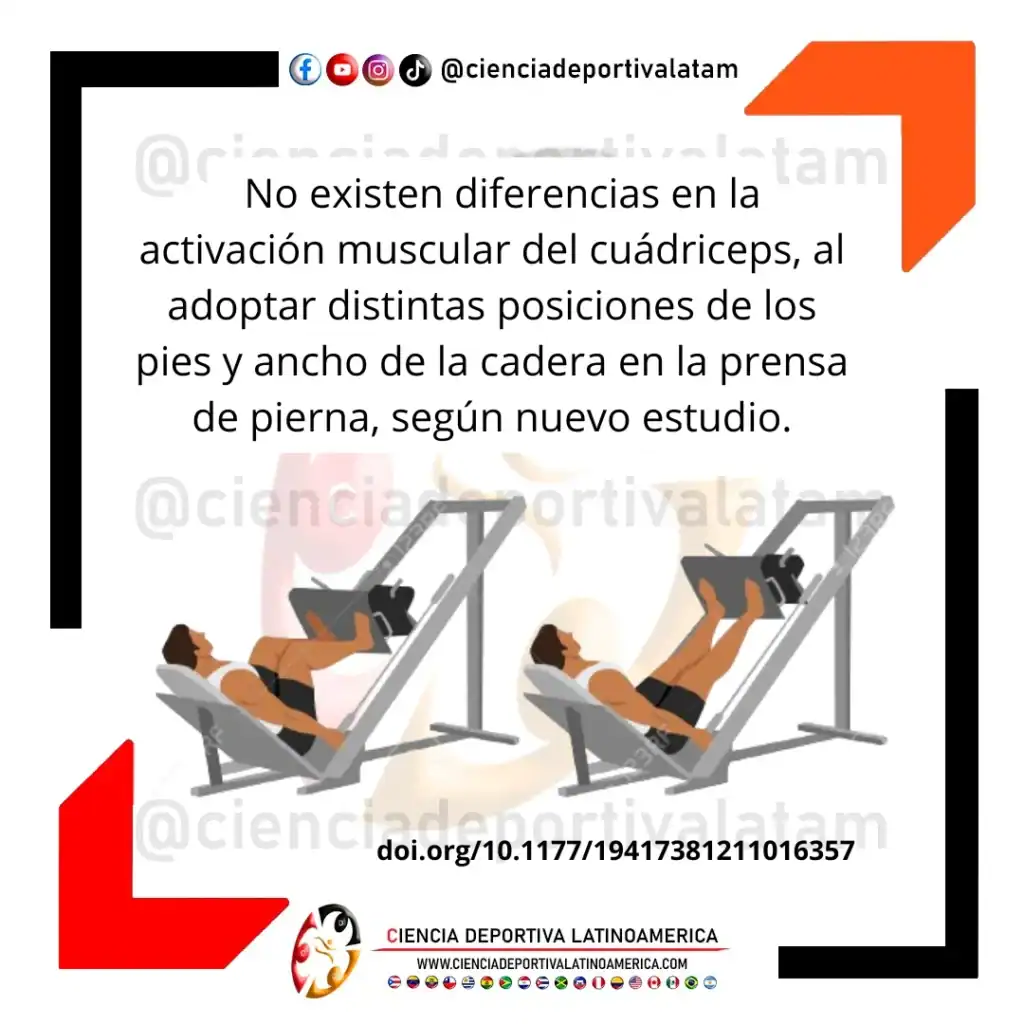 De momento, no parece haber ventaja de modificar la posición de los pies, para lograr un estimulo específico de diferente musculatura del cuádriceps en prensa de pierna, por lo que los levantadores deben elegir de acuerdo a su preferencia y comodidad.