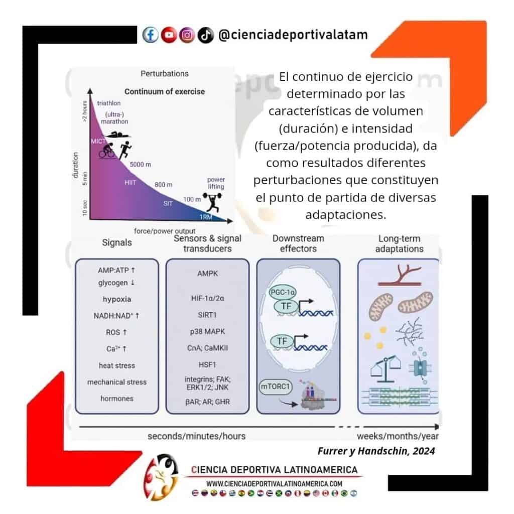 Si bien existen adaptaciones distintivas a los diversos tipos de ejercicio en el continuo de volumen e intensidad (entrenamiento de fuerza y resistencia), todavía no están claras las señales moleculares específicas desencadenadas por las perturbaciones agudas impulsadas por las diferentes configuraciones de carga en el continuo de ejercicio, que dan lugar a esas adaptaciones crónicas.