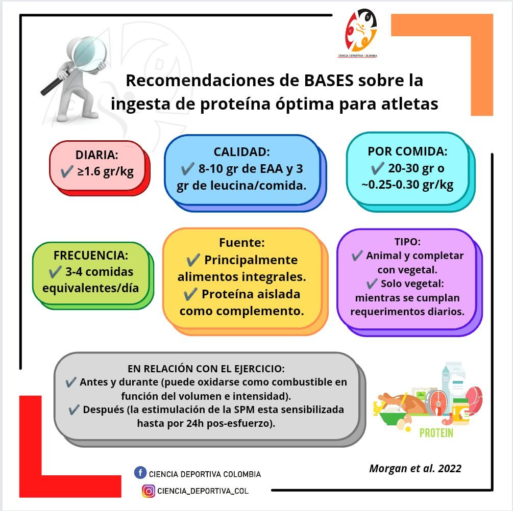 👨🏿🏫 Recomendaciones de BASES (Asociación británica de ciencias del deporte y el ejercicio), basadas en evidencia sobre la ingesta de proteína para atletas.