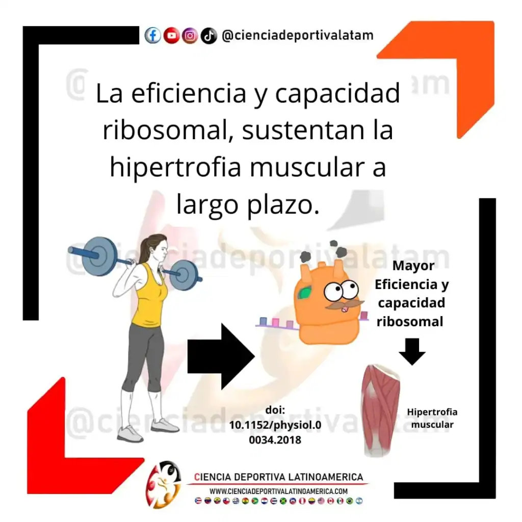 Un episodio agudo de entrenamiento de fuerza desencadena una cascada de señales anabólicas que entre otras cosas, incrementan la función ribosomal, de modo que cada ribosoma es capaz de traducir (decodificar) una mayor cantidad de ARN mensajeros, lo que en última instancia permite la síntesis de más proteínas (entre ellas las proteínas miofibrilares). En otras palabras, aumenta la eficiencia ribosomal.