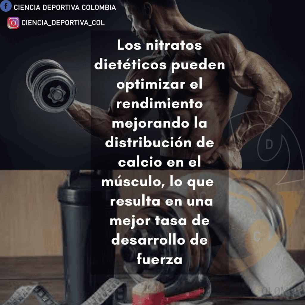 De igual manera, investigaciones recientes, indican que la suplementación con nitratos puede mejorar el flujo sanguíneo en mayor medida en las fibras musculares tipo II, por otro lado, los nitratos dietéticos pueden optimizar el rendimiento mejorando la distribución de calcio en el músculo, lo que resulta en una mejor tasa de desarrollo de la fuerza.