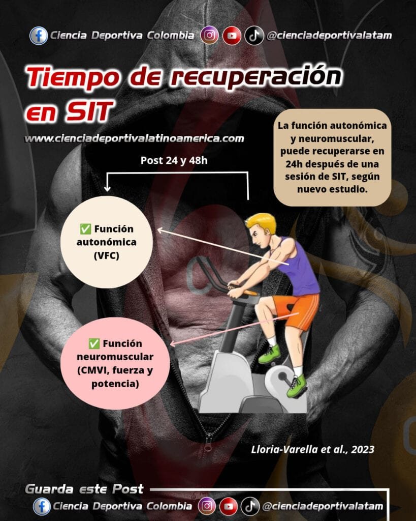 En un nuevo estudio, se encontró que no hubo diferencias en la recuperación de la función neuromuscular (medida por la máxima contracción voluntaria isométrica, fuerza estimulada eléctricamente y potencia máxima) y autonómica (medida por la variabilidad de la frecuencia cardíaca), luego de 24 y 48h posteriores a una sesión de SIT (8 sprint máximos de 15 segundos con 2 minutos de descanso entre repeticiones).